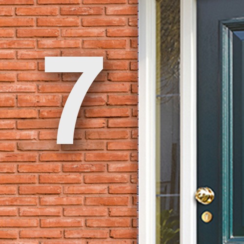 Hausnummer 7 aus weißem Acrylglas mit einer Höhe von 16 cm.