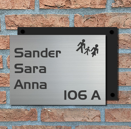 Haustürschild im modernen Edelstahl-Look mit schwarzer Kunststoff-Rückplatte, inkl. Befestigungsmaterial zur Anbringung an Ihre Hauswand. Sie können Ihr eigenes Türschild ganz nach Wunsch im Schilder Konfigurator selber gestalten. Die Wunschbeschriftung erfolgt mittels Folienplott (Aufkleber).