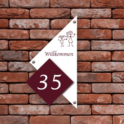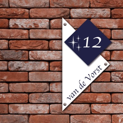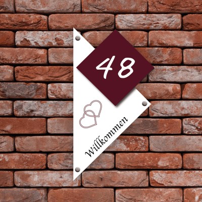 Die Populaire-Linie liefert Ihnen ungewöhnliche, kontrastreiche Schilder im dynamischen Design. Die Kombination aus weißem Dreieck mit schwarzem / dunkelblauem / dunkelrotem / dunkelgrünem Quadrat bietet Raum für Ihre Hausnummer, Namen und Deko-Elemente Ihrer Wahl.